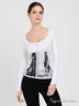 Стильный лонгслив прилегающего силуэта выполнен из тонкого вискозного джерси. Широкий округлый вырез горловины, длинный рукав, полочка декорирована оригинальным рисунком. Отлично сочетается с брюками и джинсами!