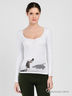 Стильный лонгслив прилегающего силуэта выполнен из тонкого вискозного джерси. Широкий округлый вырез горловины, длинный рукав, полочка декорирована оригинальным рисунком. Отлично сочетается с брюками и джинсами!