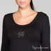 Лонгслив из мягкого трикотажа с круглым вырезом горловины. Спереди джемпер украшен монограммой из страз.