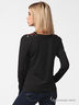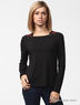 Трикотажная однотонная кофта с длинным рукавом и квадратным вырезом горловины, декорирована металлическими заклёпками и тканевыми вставками в контрастную полоску на плечах.