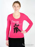 Слегка эластичный лонгслив. Длинные рукава, глубокий круглый вырез, на полочке оригинальный принт со стразами.