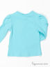Детали: округлый вырез горловины, длинные рукава с небольшими сборками, полочка декорирована принтом и аппликациями.