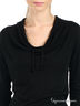 Детали: широкий ворот-стойка на кулиске с продетой лентой, длинный прямой рукав