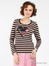 Детали: округлый вырез горловины, длинные облегающие рукава, полочка декорирована принтом со стразами.