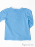 Детали: округлый вырез горловины, застежка на кнопки на спине, длинный прямой рукав, полочка декорирована набивным рисунком
