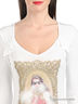Детали: V-образный вырез, длинные рукава, на полочке оригинальный принт со стразами и наклеенным меховым декором