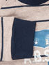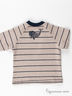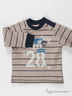 Лонгслив прямого силуэта выполнен из трикотажа средней плотности. Круглый вырез горловины, застежка на две кнопки на левом плечике. Рукава посажены на манжеты. Полочка декорирована принтами.