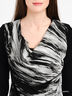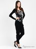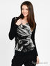 Отличный лонгслив приталенного силуэта из тонкого трикотажа. Вырез горловины "качели", длинный рукав. Передняя часть выполнена из креп-жоржета декорирована рисунком. Отличный вариант для создания повседневного образа.