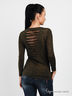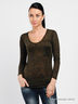 Прекрасный лонгслив с длинными рукавами и округлым вырезом горловины. Нагрудный карман и спинка декорированны пайетками, на спинке декоративные разрезы и сетчатая вставка. Отличный повседневный вариант.