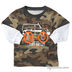 Лонгслив прямого силуэта с эффектом "двойки". Полочка украшена аппликациями. Манжеты - трикотажные резинки.