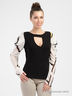 Кофта с длинными рукавами и округлым вырезом горловины. Изделие выполнено из ткани контрастной расцветки и фактуры. Отличный вариант на каждый день.