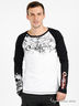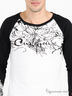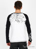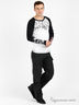 Практичный лонгслив из трикотажа средней плотности с округлым вырезом горловины и длинным рукавом. Плечи и рукава контрастного черного цвета. Полочка, рукав и спинка декорированы принтами. Отличный вариант для создания повседневного образа.