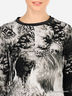 Детали: круглый вырез с окантовкой; длинный рукав; оригинальный принт; на полочке драпировка