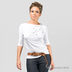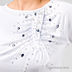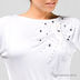 Стильный лонгслив из мягкого трикотажа с круглым вырезом горловины и рукавами длиной до локтя. Спереди лонгслив украшен декоративными складками и жемчужными бусами.