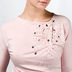 Стильный лонгслив из мягкого трикотажа с круглым вырезом горловины и рукавами длиной до локтя. Спереди лонгслив украшен декоративными складками и жемчужными бусами.