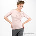 Стильный лонгслив из мягкого трикотажа с круглым вырезом горловины и рукавами длиной до локтя. Спереди лонгслив украшен декоративными складками и жемчужными бусами.