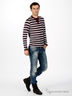 Детали: округлый вырез горловины, яркие полосы, ворот и манжеты - трикотажные резинки, трикотажная вставка на полочке
