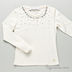 Стильный трикотажный лонгслив для девочки с округлым вырезом горловины. Полочка декорирована стразами и бисером.