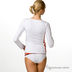 Трикотажная футболка с круглым вырезом горловины и длинными рукавами. Боковой шов футболки украшен тесьмой с логотипом марки.
