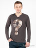 Детали: асимметричный вырез горловины, длинные рукава, полочка изделия украшена принтом