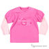 Лонгслив для девочки ярко-розового цвета в сочетании с нежно-розовым. Благодаря не простому крою рукава, создается иллюзия многослойности. На грудке красивый принт. Эта модель украсит и подарит романтическое настроение.