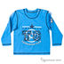 Лонгслив для мальчика ярко-голубого цвета. Модель выполнена в спортивной стилистике. Отличительной чертой лонгслива являются контрастные темно-синие отстрочки по швам и яркий принт на груди.