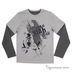 Трикотажный лонгслив для мальчика с эффектом двойки. Круглая горловина. Длинные рукава. На полочке оригинальный принт.