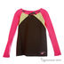 Модель прямого кроя с округлым вырезом горловины. Ворот декорирован атласной лентой.