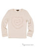 Замечательный лонгслив для маленькой модницы. Модель с округлым вырезом горловины и длинными рукавами, на груди украшена аппликацией из рюшек в виде сердца. Рукава изделия так же оформлены рюшей. Прекрасный вариант на каждый день.