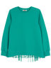 Лонгслив с длинным рукавом на манжете. По спинке декоративная деталь из отделочного полотна. Изготовлен из петельчатого 2х ниточного футера с эластаном, без начеса