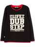 Лонгслив с длинным рукавом. Внизу лонгслива, рукавов, планка горловины имеют отделочные элементы. Спереди симпатичный принт. Изготовлен из интерлока.
