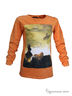 Замечательный лонгслив из хлопкового трикотажа. Округлый вырез горловины. Длинные прямые рукава. Полочка декорирована ярким принтом.