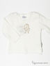 Лонгслив прямого силуэта с округлым вырезом горловины и длинным рукавом. Застежка на две кнопки на левом плечике. Полочка украшена принтами.