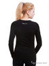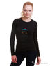 Женский лонгслив с длинными рукавами и круглым вырезом. Однотонная облегающая модель с аппликацией "звезда" в разноцветную полоску спереди.