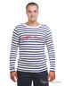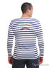Мужская футболка в полоску с длинными рукавами. Плотное джерси. Прямой крой. Воротник-лодочка с 3 пуговицами. Вышивка "флаг" сзади. Нашивка на рукаве. Логотип на груди.