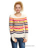 Легкий женский лонгслив в разноцветную полоску с длинными рукавами и круглым вырезом. Прямой крой. Контрастные налокотники. Логотип на груди.