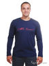Однотонная мужская футболка с длинными рукавами. Прямой крой. Круглый вырез. Вышивка "флаг" сзади. Логотип на груди.