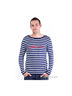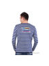 Мужская футболка в полоску с длинными рукавами. Плотное джерси. Прямой крой. Воротник-лодочка с 3 пуговицами. Вышивка "флаг" сзади. Нашивка на рукаве. Логотип на груди.