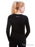 Женская футболка с длинными рукавами и круглым вырезом. Однотонная облегающая модель с аппликацией "звезда" в разноцветную полоску спереди.