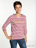 Женская футболка в полоску с длинными рукавами и круглым вырезом. Прямой крой. Рукава с планками и пуговицами для фиксации отворотов. Логотип на груди.