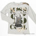 Детали: округлый вырез горловины, длинный прямой рукав, полочка декорирована набивным рисунками и клепками, левое плечо декорировано металлической сеточкой