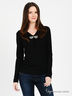 Эффектный лонгслив с V-образным вырезом горловины и длинным рукавом. Изделие выполнено из эластичного трикотажа средней плотности. Полочка декорирована встречной складкой и нашивкой со стразами. Отличный вариант для тех, кто любит комфорт и качество.