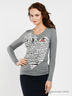 Стильный лонгслив приталенного силуэта. Выполнен из приятного на ощупь материала. Округлый вырез горловины. Длинные рукава. Полочка украшена оригинальным принтом.