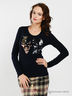 Оригинальный лонгслив приталенного силуэта. Выполнен из приятного на ощупь материала. Округлый вырез горловины. Длинные рукава. Полочка украшена оригинальным принтом из пайеток.
