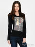 Яркий лонгслив с округлым вырезом горловины и длинным рукавом. Изделие выполнено из эластичного трикотажа средней плотности. Полочка украшена принтом и стразами. Отличный вариант на каждый день.