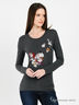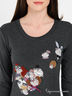 Эффектный лонгслив с округлым вырезом горловины и длинным рукавом. Изделие выполнено из эластичного трикотажа средней плотности. Полочка декорирована принтами и разнообразными элементами. Отличный вариант для тех, кто любит комфорт и качество.