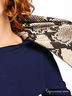 Стильный лонгслив из приятного на ощупь материала. Горловина декорирована шарфом со змеиным принтом.