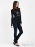 Повседневный лонгслив с длинными рукавами и воротником стойкой на завязке. Прямого силуэта. Выполнен из мягкой эластичной ткани. Полочка украшена оригинальным ярким принтом, стразами и атласным бантиком. Идеальный вариант на каждый день!