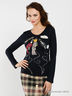 Стильный лонгслив приталенного силуэта. Выполнен из приятного на ощупь материала. Округлый вырез горловины. Длинные рукава. Полочка украшена оригинальным принтом с аппликациями.