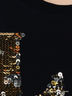 Оригинальный лонгслив приталенного силуэта. Выполнен из приятного на ощупь материала. Округлый вырез горловины. Длинные рукава. Полочка украшена оригинальным принтом из пайеток.